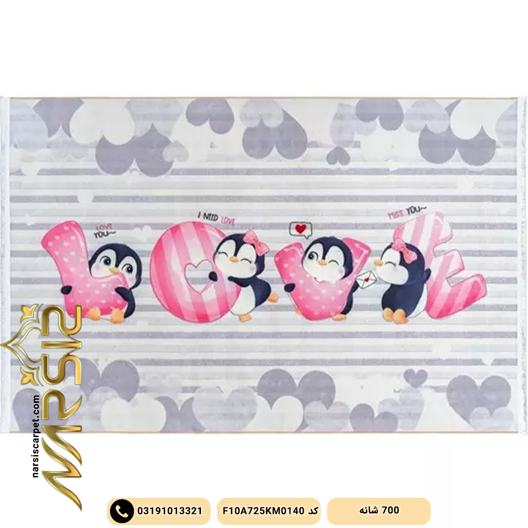 فرش کودک طرح پنگوئن عاشق love کد 25KM0140 یکی دیگر از فرش کودک می باشد که می توانید از فرش نارسیس انتخاب و خریداری کنید. این فرش در سایز بندی 9 متری تا پادری قابل انتخاب است. برای دریافت اطلاعات بیشتر در زمینه خرید فرش کلاریس با مشاوران ما در بخش فروش تماس حاصل فرمایید.