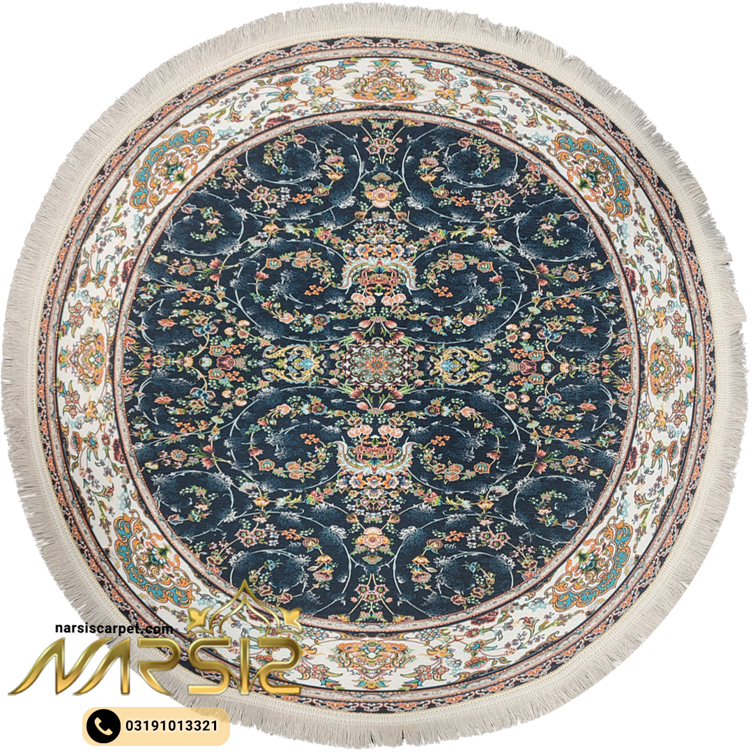 فرشینه گرد طرح افشان زمینه سرمه ای کد 90126 یکی دیگر از طرح های فرشینه گرد می باشد که به صورت نمد 1000 گرم استپ دار با زمینه فرشینه سرمه ای تولید شده است.