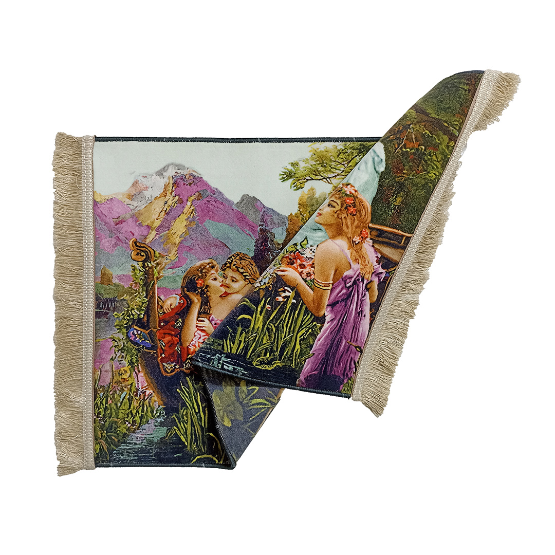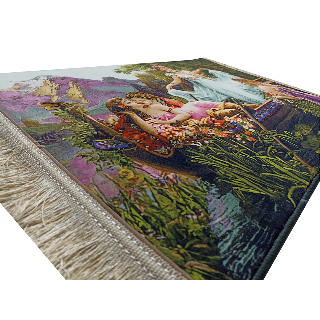 تابلو فرش طرح پرنسس تصویری بسیار زیبا با رنگ آمیزی جذاب و دلربا میباشد. تابلو فرش فرانسوی طرح پرنسس که تصویر چند دختر روی قایق در دل طبیعت را نشان می دهد. زیبایی دختران و با لباس هایی خاص و رنگی جذابیت و زیبایی تابلو فرش را دو چندان کرده است. تابلو فرش ها یک کالای زینتی و هدیه ماندگار محسوب می شود. و می توان گفت یکی از بهترین گزینش برای دکوراسیون منزل،اتاق خواب،محل کار باشد. تابلو فرش ها به دو صورت ماشینی و دستباف تولید می شوند.تنوع و نقش و نگار تابلو های دستباف با ماشینی متفاوت است.تابلو فرش های ماشینی از نظر تنوع طرح و رنگ گسترده تر از دستبافت می باشند.